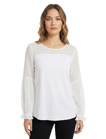 Blusa blanca de manga larga con canesú transparente y mangas globo, elegante y moderna para cualquier ocasión. La talla L ofrece una caída cómoda y un estilo sofisticado que destaca sin esfuerzo.